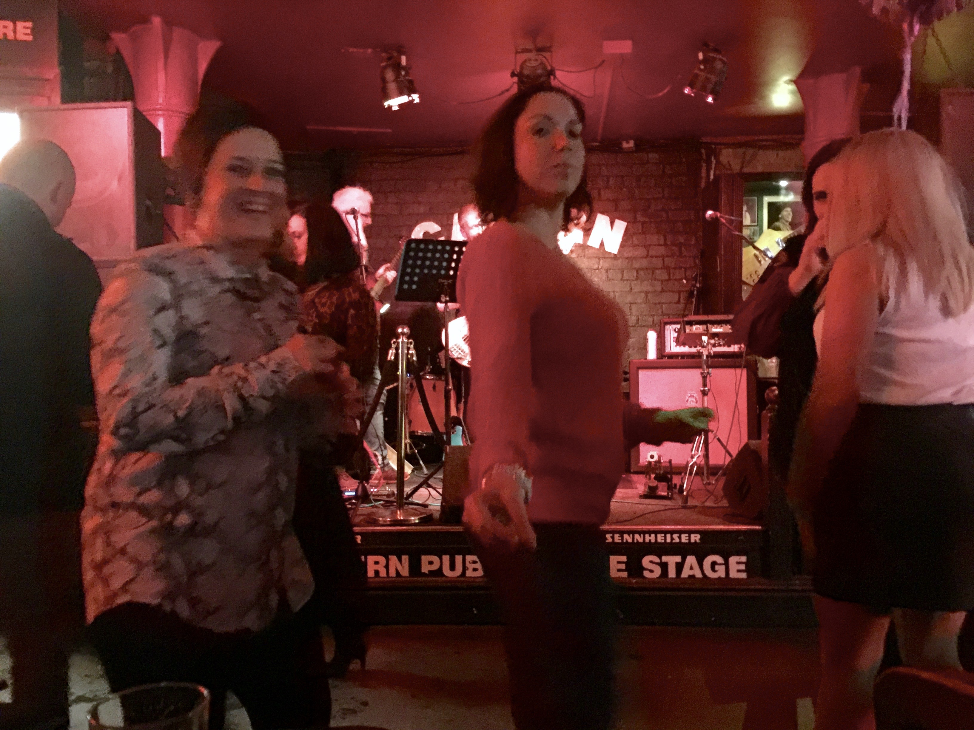 We’re in the Cavern Pub right now under dark lights, drinking beer and prosecco, and the band just started playing The Ballad of John and Yoko !